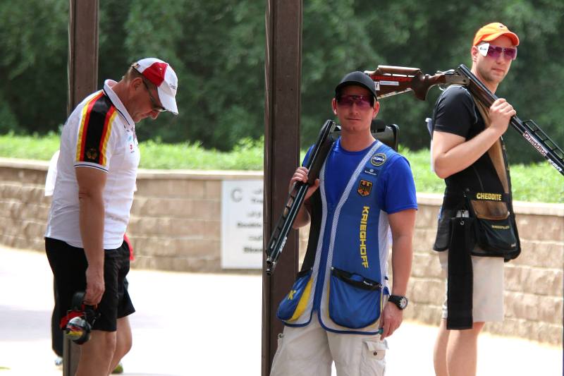 Al Ain, UAE (Uwe Möller) Anders als bei den Trapschützen, die ja hier beim Weltcup bei den Männer und Frauen schon mal in Finaleingangsnähe lagen, sind unsere Doppeltraper noch ein ganz schönes Stück davon entfernt. Andy Löw belegte mit 134 getroffenen Scheiben Platz 22, Michael Goldbrunner mit 133 Scheiben den 27. Platz. Sieger wurde der Russe Mosin vor den beiden Italienern Innocenti und Gasparini.